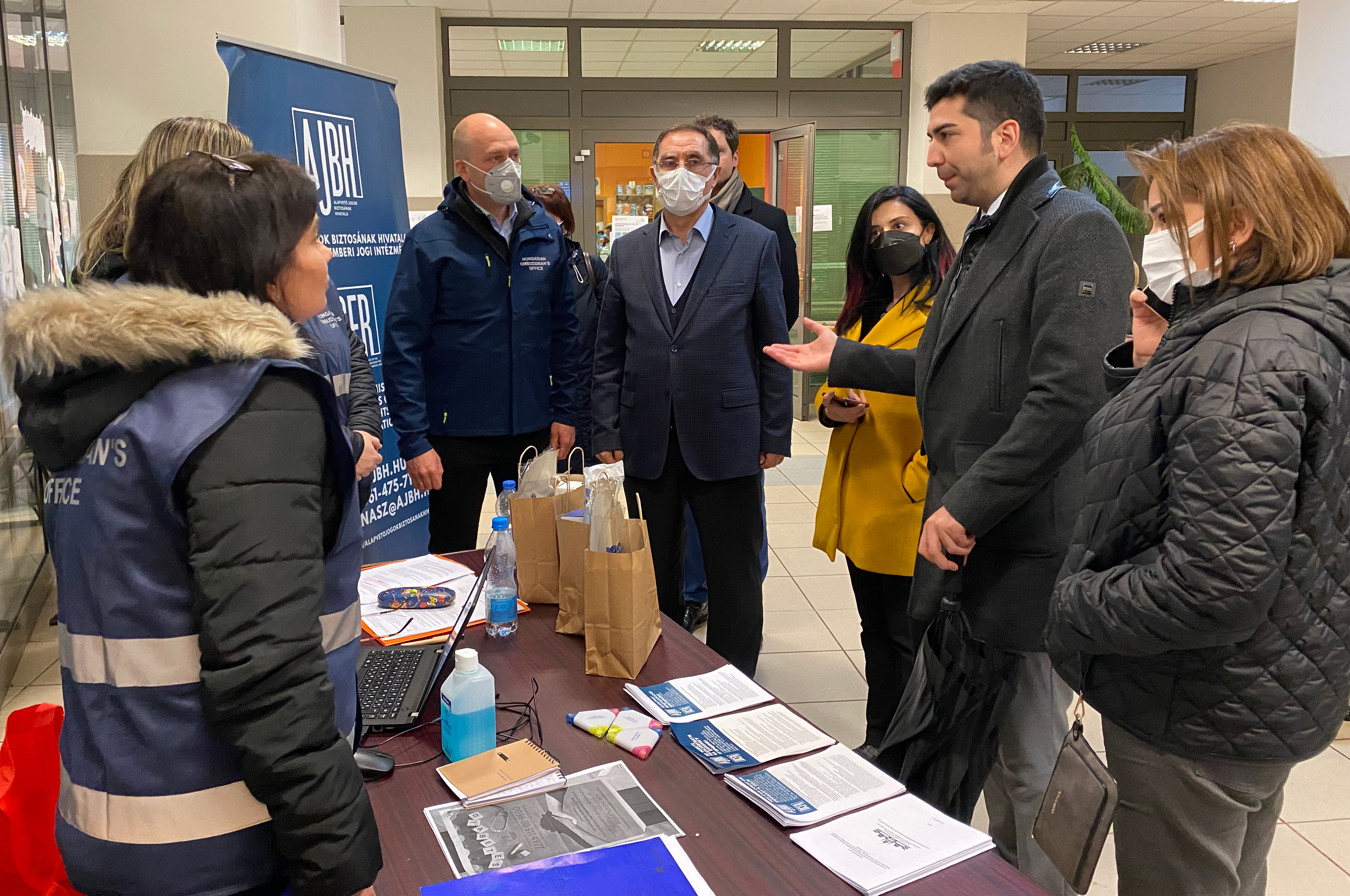 The Ombudsmen also paid a visit to the Fehérgyarmat reception point, where Police Colonel Dr. József Seres, Deputy Director General of the National Directorate-General for Aliens Policing (OIF) received them and presented the activities of the OIF carried out at the Hungarian–Ukrainian border.