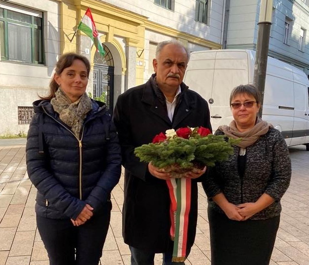 Szalayné Sándor Erzsébet Nemzetiségi Ombudsmanhelyettes, Langerné Victor Katalin köztársasági elnöki tanácsadó és Daróczi János a Társadalmi Esélyteremtési Főigazgatóság főigazgatója közösen emlékeztek az 1956-os hőseinkre Szabó Ilona emléktáblájánál a Corvin-negyedben.