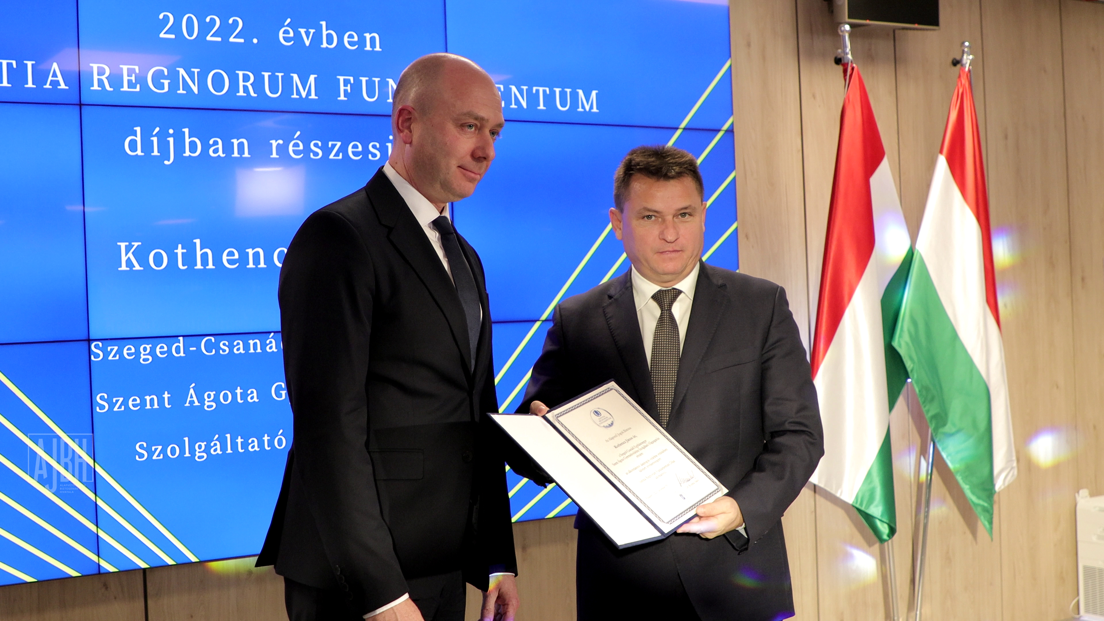 Az Alapvető Jogok Biztosának Hivatalában tartott ünnepségen Justitia Regnorum Fundamentum díjat vehetett át dr. Kozma Ákostól, az alapvető jogok biztosától Kothencz János, a Szeged-Csanádi Egyházmegye Szent Ágota Gyermekvédelmi Szolgáltató főigazgatója. Dr. Szalayné dr. Sándor Erzsébet, a Magyarországon élő nemzetiségek jogainak védelmét ellátó biztoshelyettes az Országos Nemzetiségi Tanács, dr. Bándi Gyula, a jövő nemzedékek érdekeinek védelmét ellátó biztoshelyettes dr. Bartus Gábor a Nemzeti Fenntartható Fejlődési Tanács titkára számára adta át az elismerést. Ombudsmani elismerést vehetett át egyúttal dr. Tóth Tamás bv. altábornagy, a Büntetés-végrehajtás országos parancsnoka, Zambó Péter erdőkért és földügyekért felelős államtitkár és Bugán József, a Szombathelyi Erdőgazdasági Zrt. vezérigazgatója.