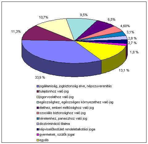 A visszássággal leggyakrabban érintett tíz alkotmányos jog a 2002. évi tapasztalatok alapján